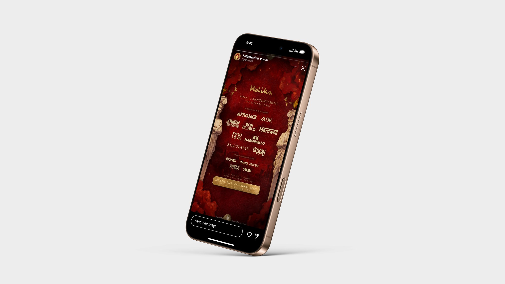 Holika Festival is an electronic music event in northern Spain, blending immersive creative direction and stage design with a distinctive visual identity inspired by transformation and intensity. The 2026 edition explores deeper textures and a rich red palette under the chapter THE ETERNAL FLAME, enhancing the connection between music and visual experience across its stages and installations.