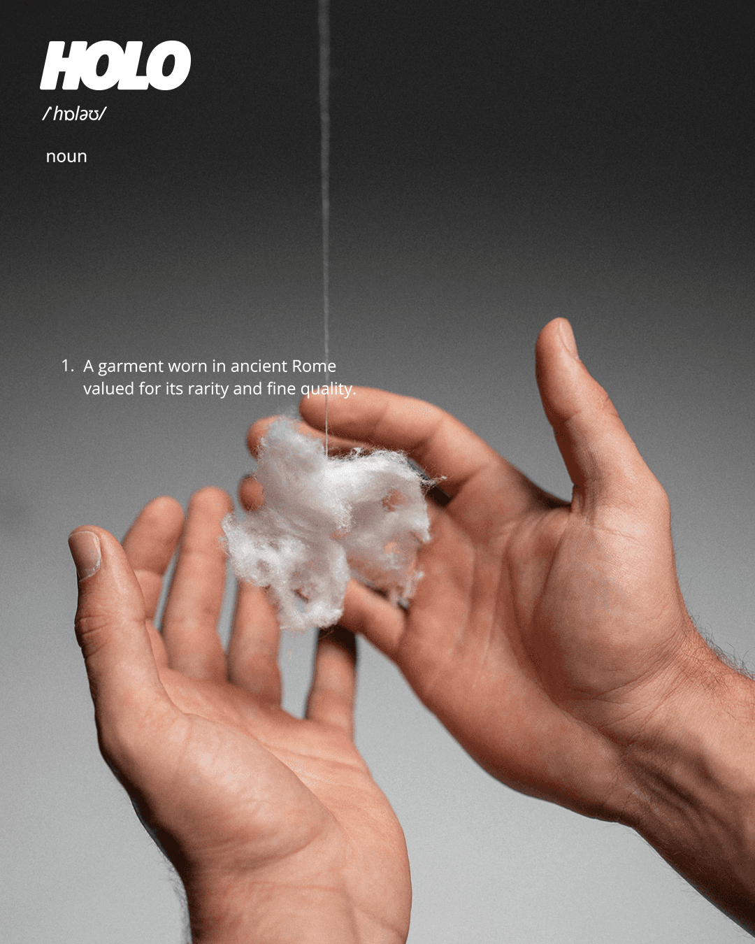 A campaign designed to blur the line between the product and the person wearing it. In HOLO, I wanted to show the process, not just the result: colors born from materials, studio textures, traces of real work. A sensory art direction — where you can feel the touch, the energy, the calm. Behind every piece, there are real people, conscious choices, and a pursuit of connection between body, matter, and movement.